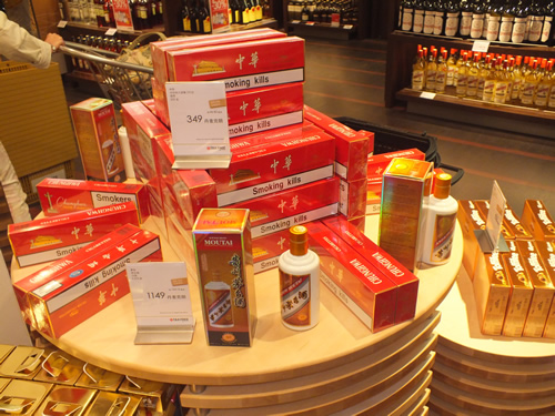 [Chinese-preferred products including Moutai and Chung-hwa cigarettes, as well as items on promotion, are highlighted in Simplified Chinese]